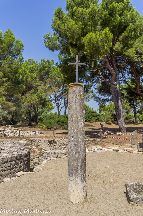 - La première, visible au nord de la zone, appartient à l'époque dite "paléochrétienne" (VIe siècle ap J.-C). Reflet d'une technique de construction aboutie, cet édifice, de 30 m de long pour environ 11 m de large dominant l'étang de Citis, comportait un pavement de dalles calcaires régulièrement agencées.