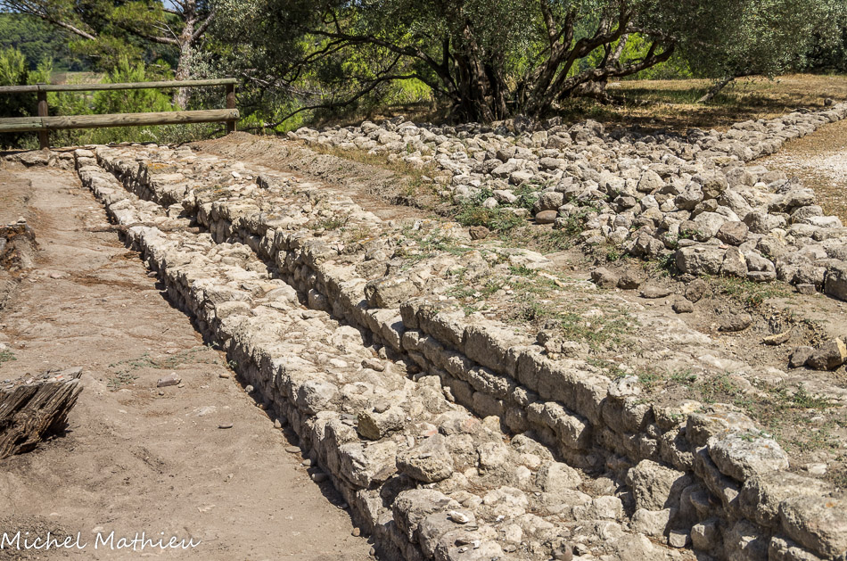 Rempart archaïque. La qualité et le nombre des objets importés mis au jour à Saint-Pierre à toutes les périodes témoignent du développement de modes de vie et d'alimentation nouveaux dans le monde indigène. Les Gaulois de Saint-Pierre sont ainsi parmi les premiers dans le Midi à cultiver la vigne et l'olivier et à en extraire vin et huile au moyen de pressoirs perfectionnés. Dès le IIIes. av. J.-C, au contact et à l'image des Grecs, certains maîtrisent aussi bien la taille de pierre que l'écriture.