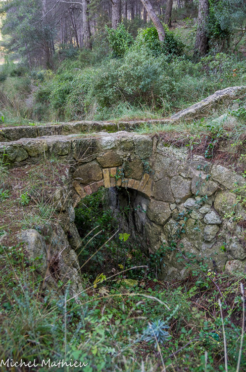 La fontaine de l'Arc. Plus au nord, subsistent les vestiges d'une seconde source aménagée de manière plus modeste, la fontaine de l'Arc. Installée en bordure même de l'étang, elle se compose également de deux réservoirs voûtés dans lesquels plusieurs ouvertures permettaient le puisage de l'eau.