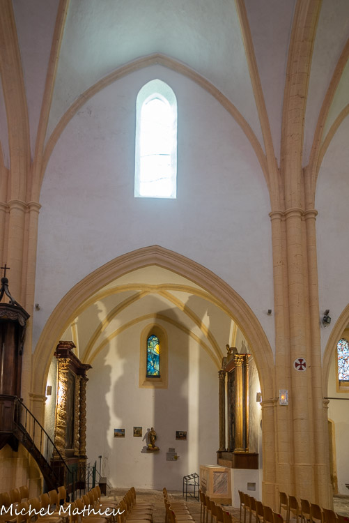 La voûte à doubleaux de la nef nord est une des parties les plus modernes du XIIème siècle, comme les deux grands arceaux de pierre bleus et le portail.