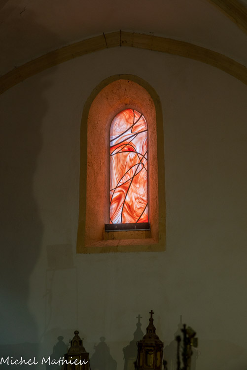 L'originalité de la chapelle est que les vitraux ont été réalisés avec des fonds de bouteilles de toutes les couleurs.