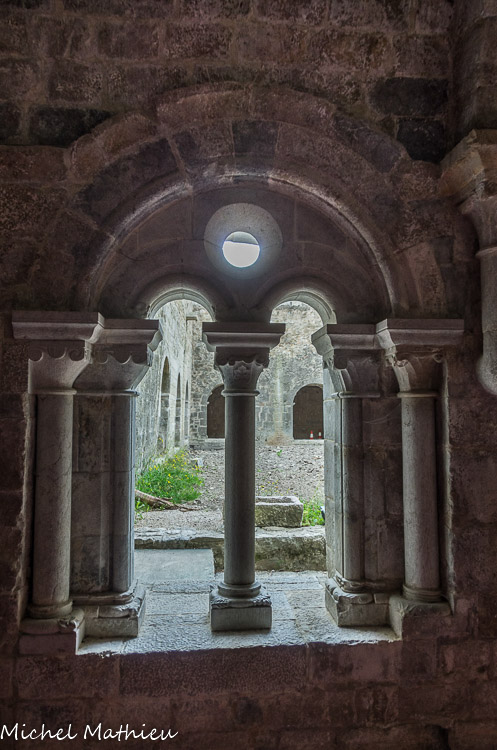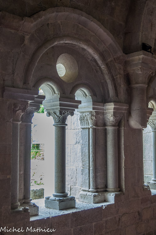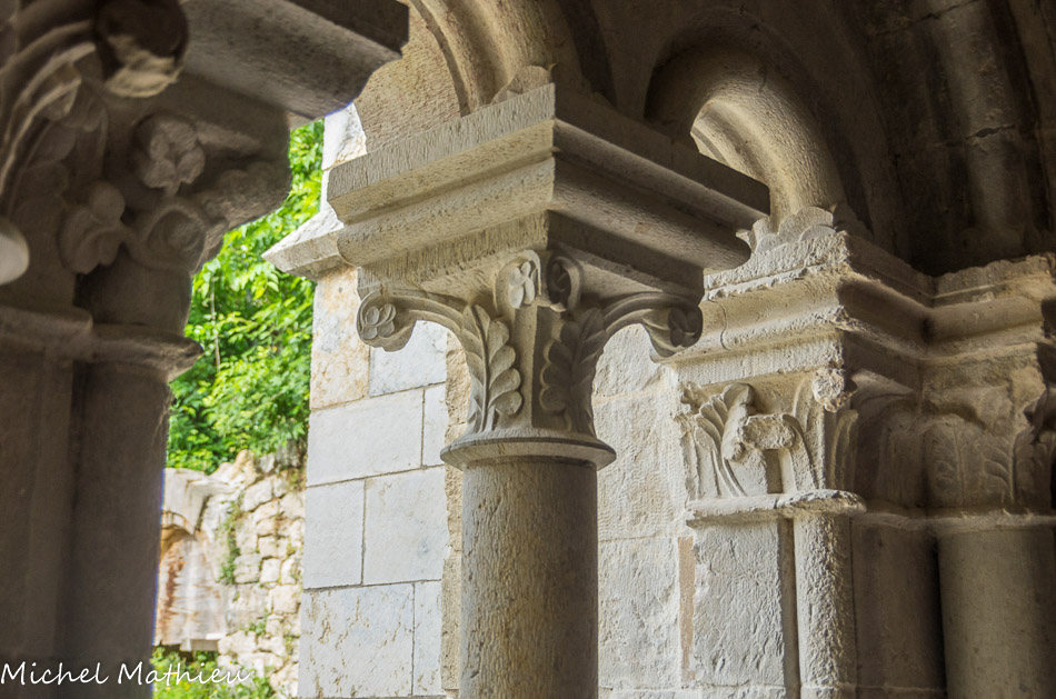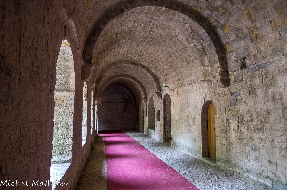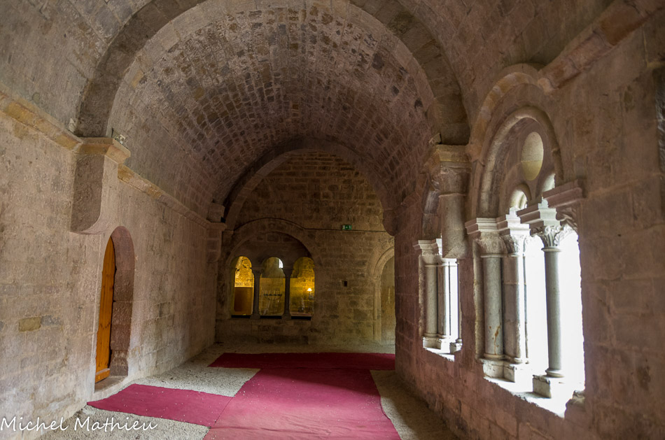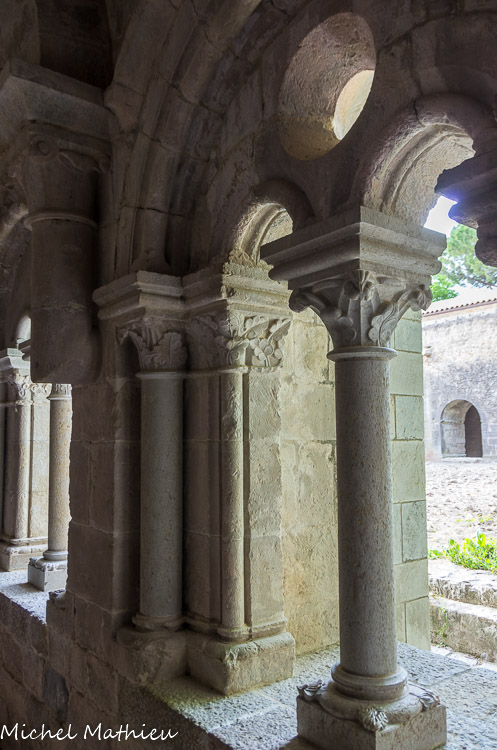 Galerie est. Au début du XIIIe siècle, un plan architectural plus ambitieux conduit à reconstruire le monastère (Monastère II) avec une forte influence du style cistercien en cours à l'abbaye du Thoronet. La galerie sud du cloître est alors érigée perpendiculairement à la galerie est, détruisant le premier lavabo. La galerie ouest, quant à elle, conserve l'orientation de l'habitat antique.