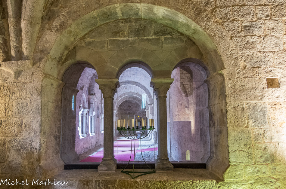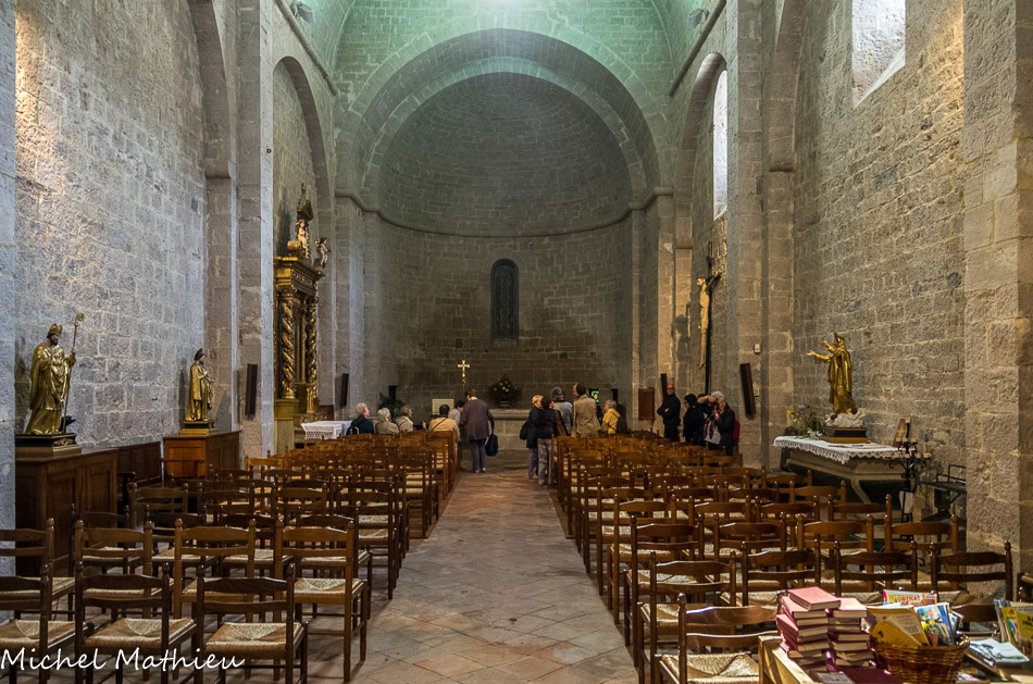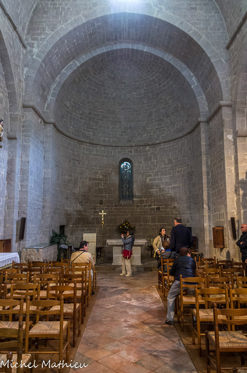 L'église sainte Marie vue de la galerie sud. L’église conventuelle, consacrée en 1054 a été le première édifiée. Elle était implantée dans la continuité de l’église Sainte Perpétue, aujourd’hui disparue. La construction se poursuit dans la seconde moitié du XIIe siècle.