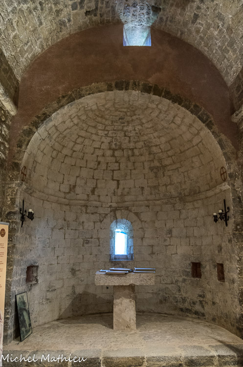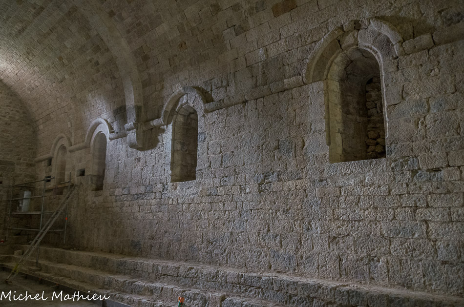 La salle capitulaire. Elle comporte à l'Est trois ouvertures étroites et cintrées.