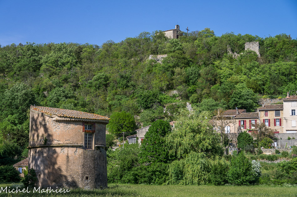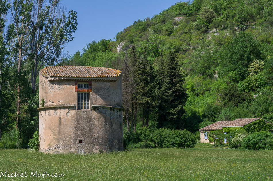 Le pigeonnier en pied. Cette bâtisse ronde est le dernier témoin d'un pavillon seigneurial qui existait en bordure de la rivière.