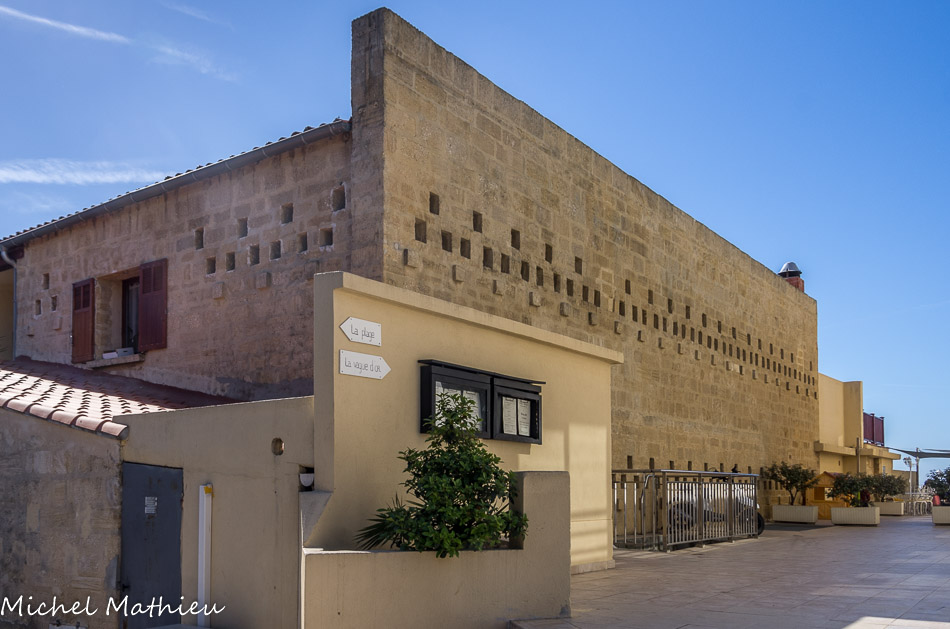 Ancienne station service. Pouillon expérimente de nouvelles techniques donc il va se servir sur tous ces chantiers. Il crée d’élégantes voûtes portées par de graciles poteaux qui forceront l’admiration de tous. Sur la plage des Sablettes, il étudie toute une déclinaison de voûtes minces enbriques qui couvrent les galeries.