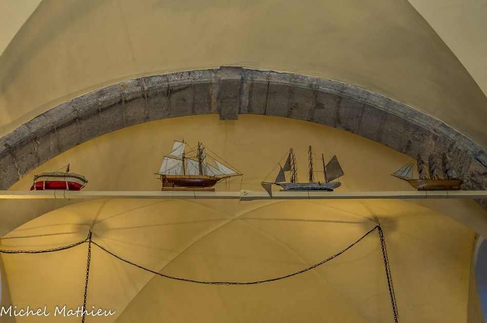 Plusieurs centaines d’ex-voto viennent témoigner de l'amour et de la reconnaissance des croyants pour Notre-Dame de Bonne Garde, dite « Notre Dame du Mai ». On y trouve des tableaux, des tapisseries, des plaques de marbre, des textes encadrés, des maquettes de bateaux, autant d'objets offerts en « conséquence d'un vœu », qui est la traduction littérale du terme d'ex-voto.