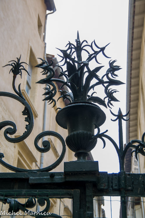 Noviciat de Saint-Louis. Grâce aux libéralités de Louise d'Ancezune, la construction du noviciat des Jésuites peut commencer en 1601. Les bâtiments, disposés en quadrilatère autour d'un vaste préau entouré de portiques, ont été réalisés à partir de 1623 par F. -de Royers de la Valfenière, puis par J. et J.-B. Péru, constructions échelonnées sur plus d'un siècle. Après la révolution, l'établissement devient succursale des invalides de Paris, puis hospice municipal à partir de 1852. En 1997, il est en partie affecté à un hôtel de prestige, le reste étant réservé à des activités culturelles. La vie du noviciat s'organise autour d'une cour centrale dessinée par quatre corps de bâtiments dont trois scandés par une superposition de pilastres toscans délimitant d'étroites travées verticales.