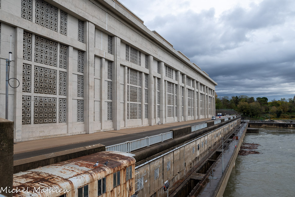 Construit entre 1948 et 1952, sur le canal de Donzère-Mondragon, à Bollène (Vaucluse), le barrage de Donzère-Mondragon est doté d'une écluse pour permettre son franchissement aux bateaux. Il fut inauguré le 25 octobre 1952 par le Président de la République française Vincent Auriol. vec une puissance de 348 mégawatts2, et une capacité de production annuelle de 2 140 gigawatts-heures, il est le plus productif du Rhône et assure 13 % de la production hydroélectrique de la Compagnie nationale du Rhône.
