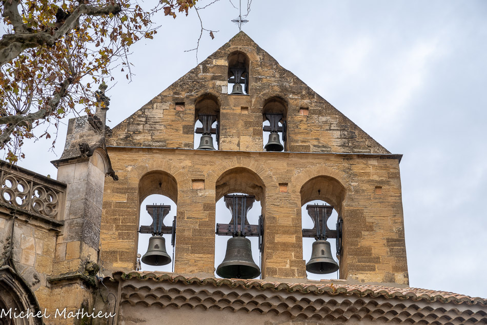 Eglise Saint Michel. Le clocher à arcade. Sa construction date de 1404. Reconstruit entre 1509 et 1511, il s’élève au-dessus de l’arc du chœur, il comprend six baies réparties sur trois étages. Ces baies sont dotées de cloches de taille et de sons différents.