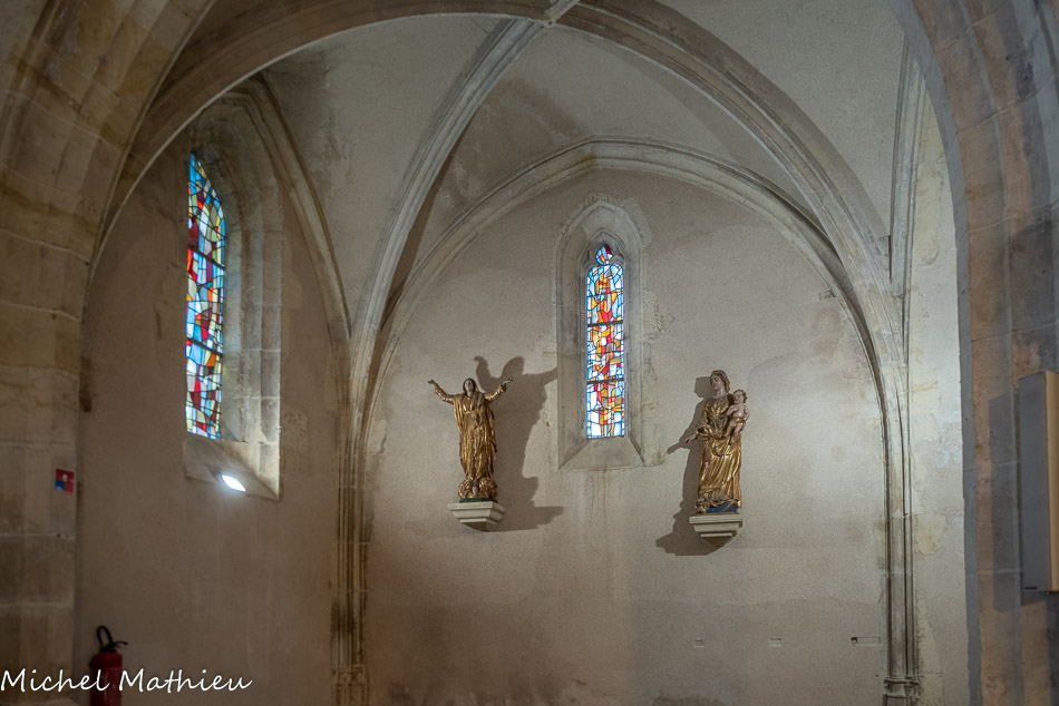 L'église Notre Dame de l'Assomption. Les chapelles latérales sont dédiées respectivement à la Vierge Marie et à Joseph. St Joseph entoiré par St Marc et Pierre de Luxembourg.