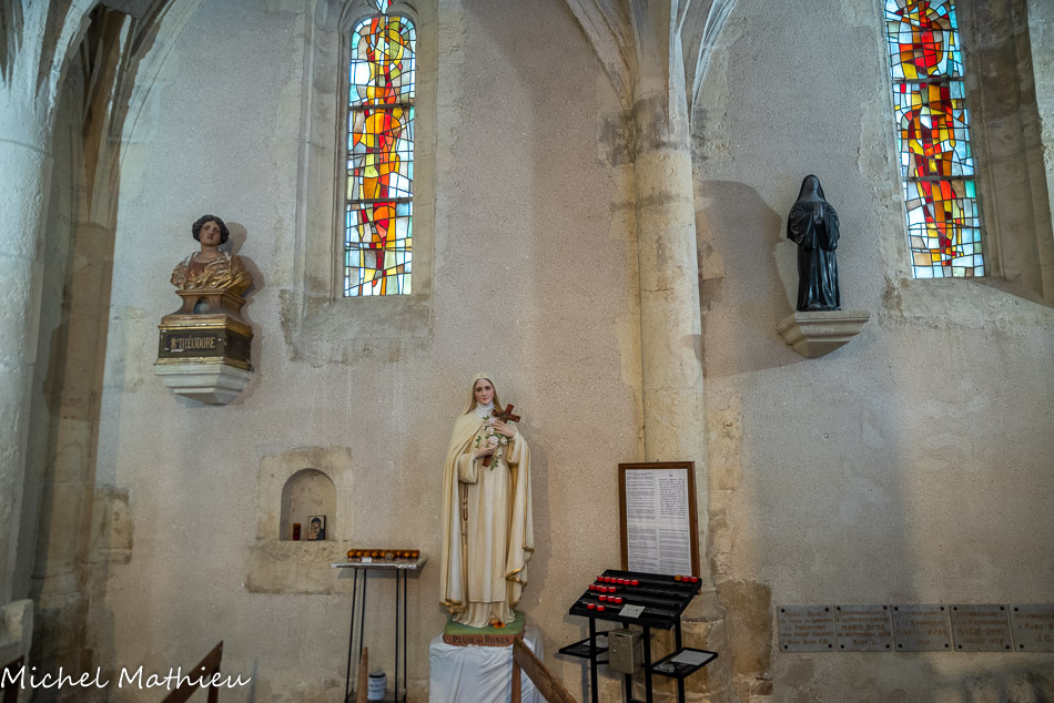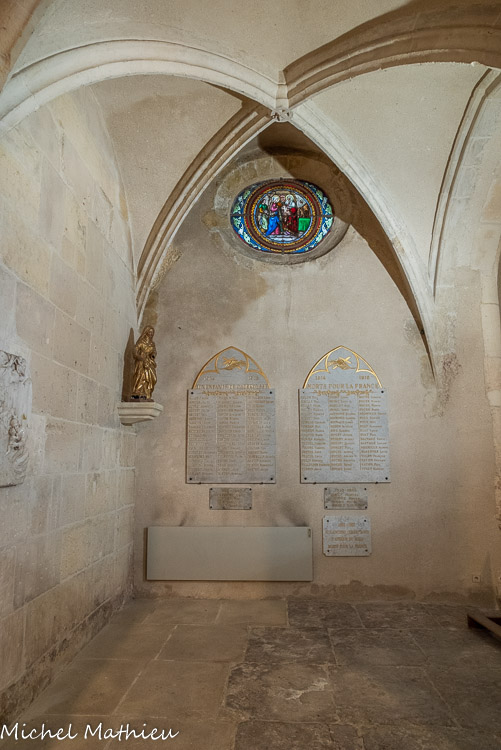Eglise Saint Michel. La chapelle du Prieur a une croisée d’ogives avec au sommet des armoiries avec fleur de lis. La Chapelle est dédiée à Saint-Eloi.