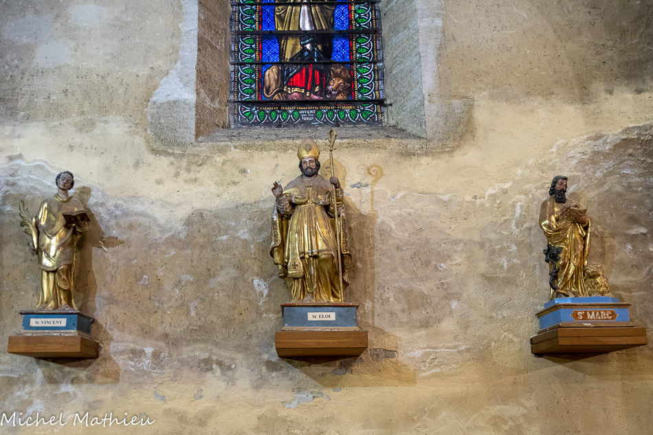 L'église Notre Dame de l'Assomption. Dtatues de Saint Vincent, Saint Eloi et Saint Marc.