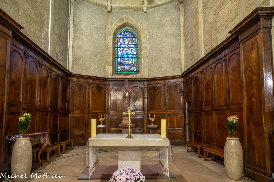 Eglise Saint Michel. Cette chapelle est éclairée par 4 fenêtres qui supportent les blasons, de Provence, de l’archevêque d’Avignon, du Comtat Venaissin, de Caderousse et d’Orange.