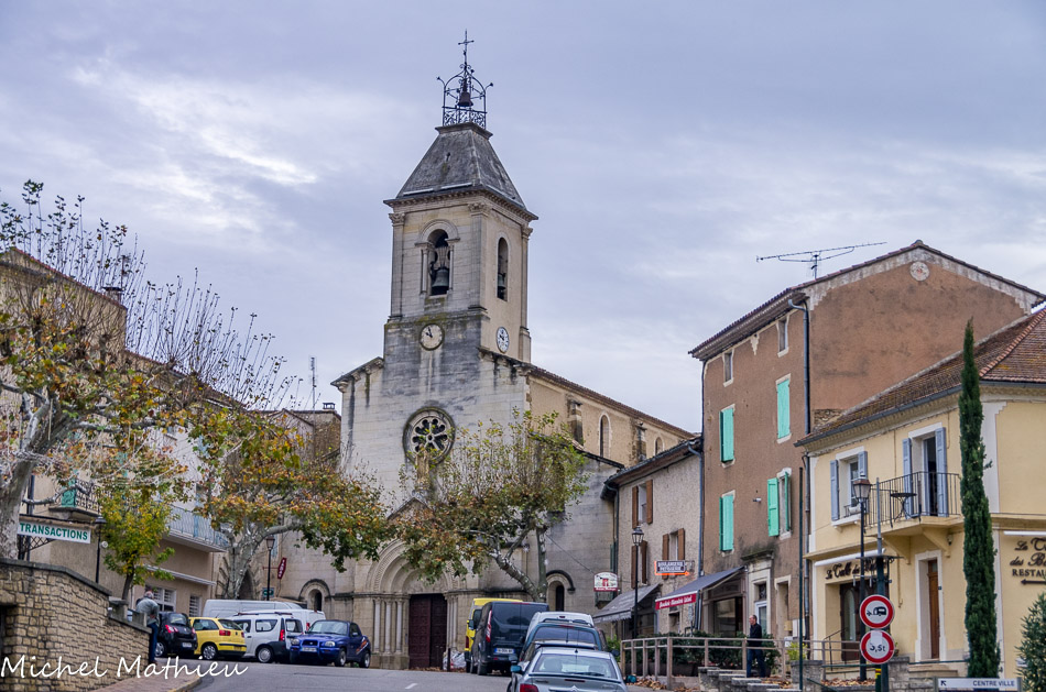 Beaumes-de-Venise. Eglise saint Nazaire. Le cours. En 1754, le Conseil de Beaumes décide de paver les rues ainsi que le parvis de l'église. A cette occasion, le fossé entre les deux portes des remparts du bas du village est comblé. Le terrain est égalisé afin qu'il soit de plain-pied jusqu'à l'église. Le mur de soutien et le parapet, quant à eux, sont mis en place au début du XIXe siècle. En 1812, un réverbère, alimenté à l'huile d'olive, est installé.