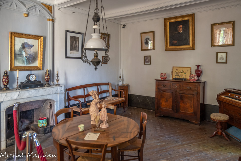La salle à manger typique du XIXe siècle permet de retrouver avec émotion le cadre de vie de l'époque du naturaliste. Tout est là : buffet, table, chaises, radassier, horloge et bibliothèque vitrée contenant un choix d'ouvrages de Fabre, piano et harmonium sur lesquels il composait la musique de ses poésies provençales, photos et bibelots de famille.