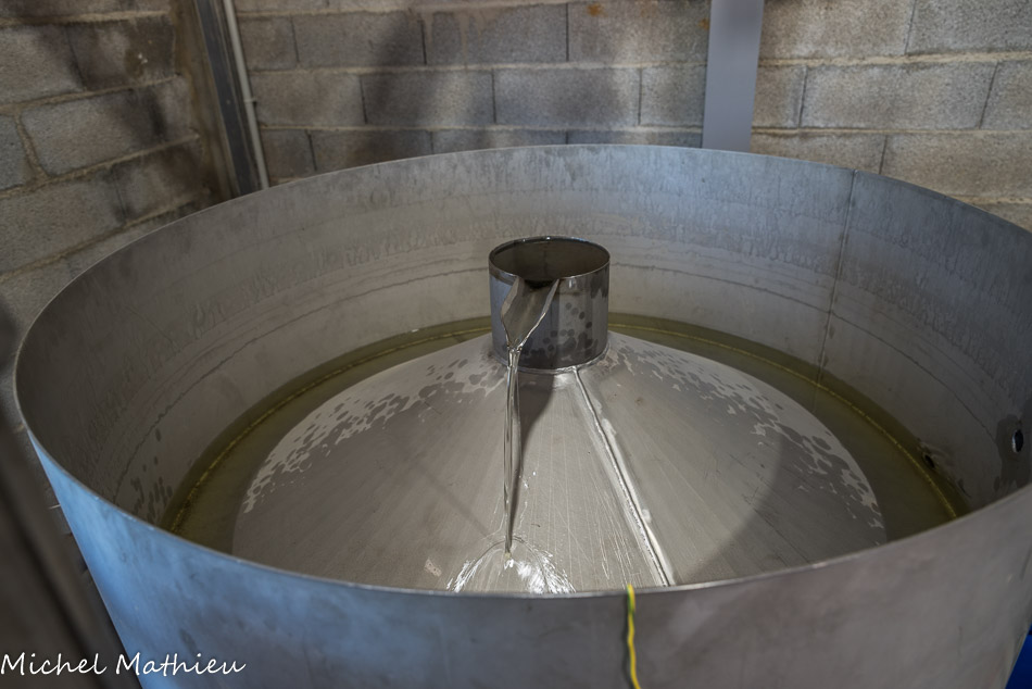 Le mélange arrive dans le refroidisseur. A son sommet, on récolte les huiles essentielles.