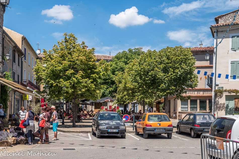 Sault. Place du marché. En 1291, Isnard II dit d’Entrevennes, signe avec Charles II, Comte de Provence, un traité qui restera la base légale de l’indépendance et des libertés du Pays de Sault.
